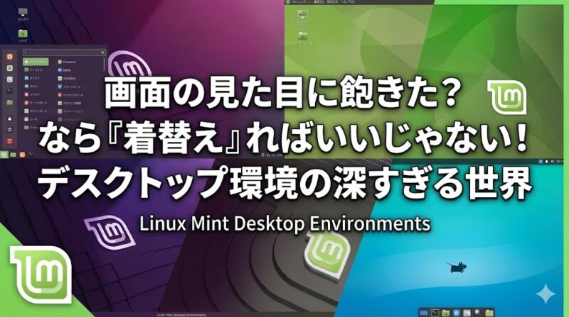 Windowsを使っていて、「スタートボタンの位置を変えたい」「メニューの開き方を変えたい」と思っても、せいぜいタスクバーを上下左右に動かすくらいしかできませんよね。 WindowsやMacにおいて、「画面の見た目」は「OSそのもの」だからです。 しかし、Linuxの世界は違います。 「OS(頭脳)」と「デスクトップ環境(服装)」は、完全に別売... -