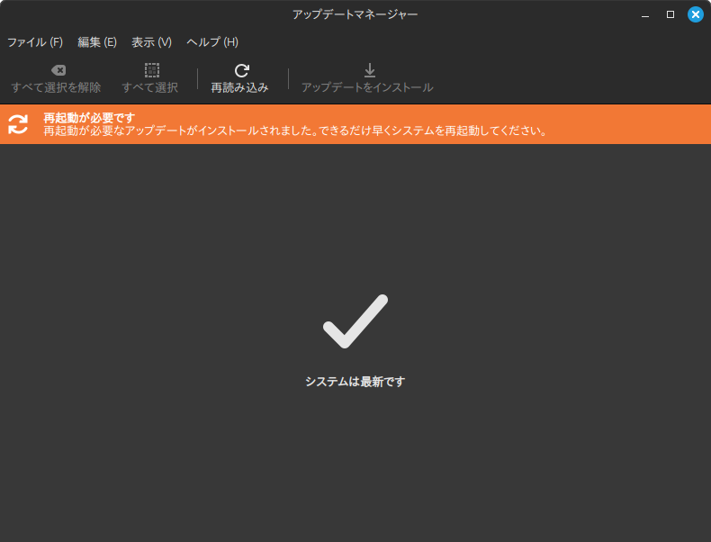 まずはアップデート項目が表示されていたら「アップデートをインストール」をクリックしてアップデートを完了させておきます。