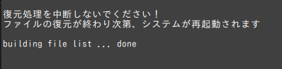 完了したら再起動します。USBメモリを抜けば、何事もなかったかのように元の状態で起動します。