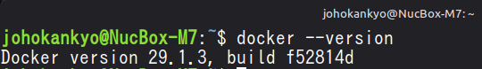 #再起動後、以下のコマンドでバージョンが表示されれば成功です。