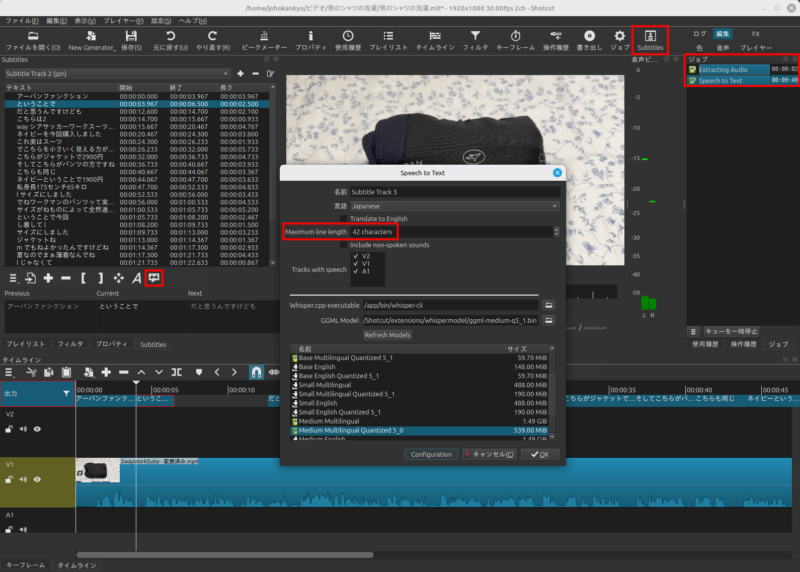さらにOKをクリックすると音声認識〜字幕自動入力が行われます。