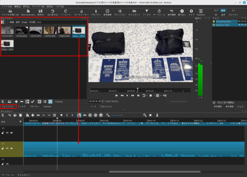 - 素材の読み込み: 左上の「プレイリスト」に動画ファイルをドラッグ&ドロップします。