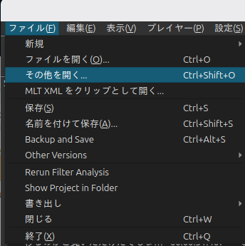 バージョンの進化に伴いメニュー配置が変わってしまうのですが、本稿執筆時点では「ファイル(F)」>「その他を開く…」を開きます。