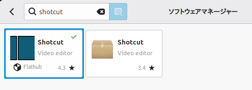 今回の「字幕機能」を使うには、比較的新しいバージョンが必要です。Linux Mint標準の「ソフトウェアマネージャ」からインストールする場合、必ずFlatpak版を選びます。