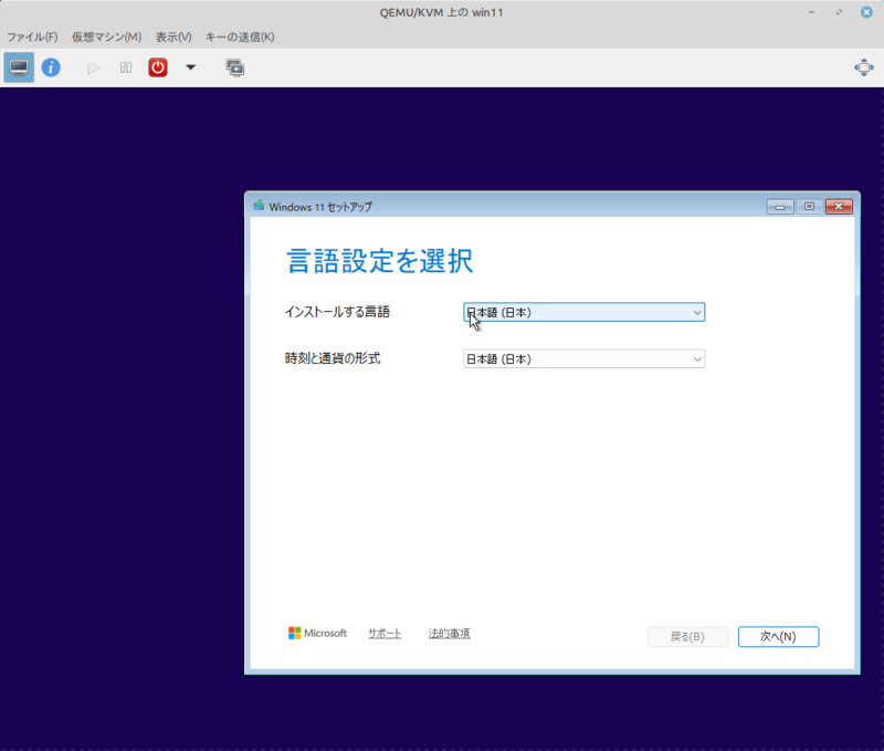 完了!: 「完了」を押すと、仮想マシンのウィンドウが開き、Windows 11のインストール画面が現れます。
