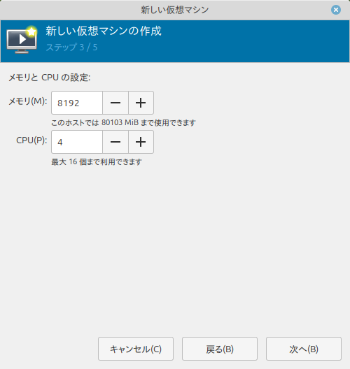 メモリ:4096MB(4GB)以上がおすすめ