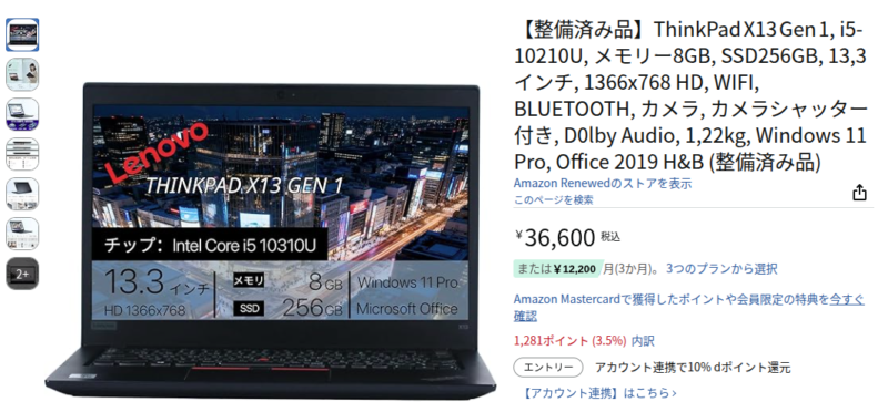 Amazonの整備済み品ノートパソコンは、専門業者によって正常に機能するように点検・クリーニング・修理され、新品同様の品質(バッテリーは80%以上の容量保証など)を持つ中古品です。180日間の返品保証付きという点が最大の特長。返品処理もAmazonなのでカンタン。他より多少高くても安心感があります。