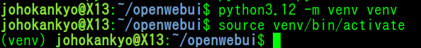 これにより、openwebui ディレクトリ内に venv という名前の仮想環境が作成されます。
