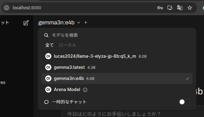 以上の手順で無事に表示され、ローカルAIが利用可能となりました。
