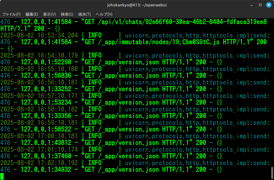 Open WebUIの使用を終える場合は、Open WebUIを実行しているターミナルで Ctrl + C を押してサーバーを停止します。
