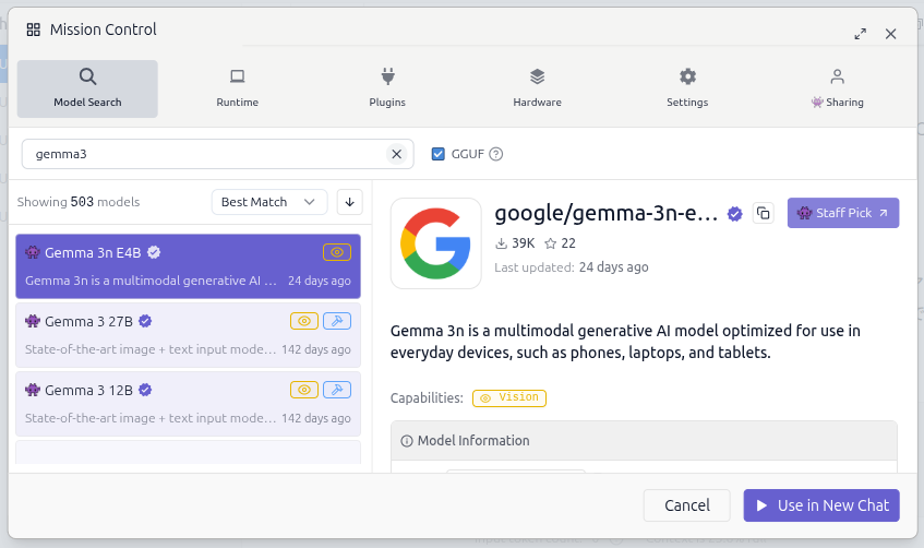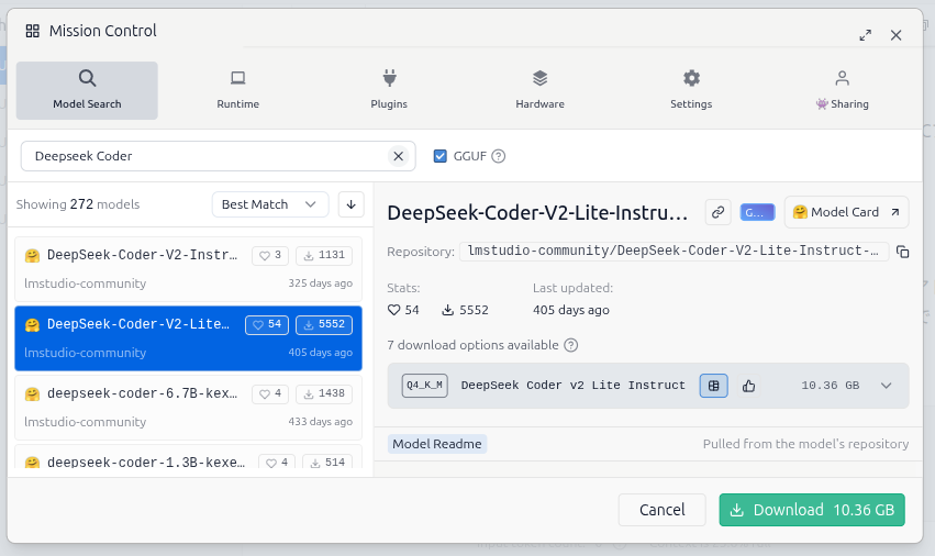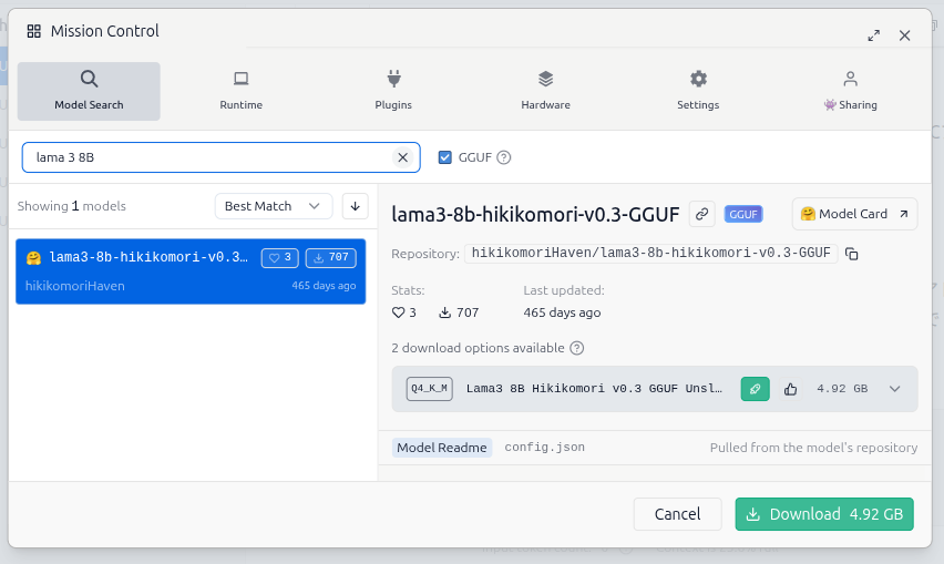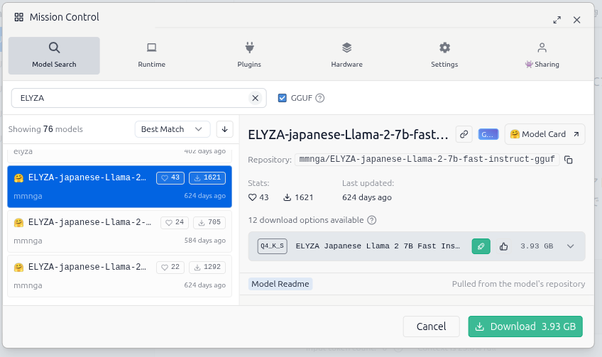 - Hugging Face(AIモデルの巨大なリポジトリ)からモデルを簡単に検索・ダウンロード